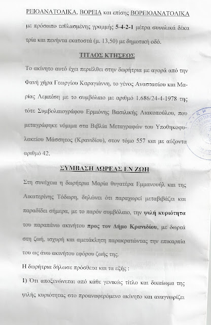 συμπατριώτισσα μας Μαρία Εμμανουήλ Τόδωρη οποία είχε δωρήσει στον Δήμο